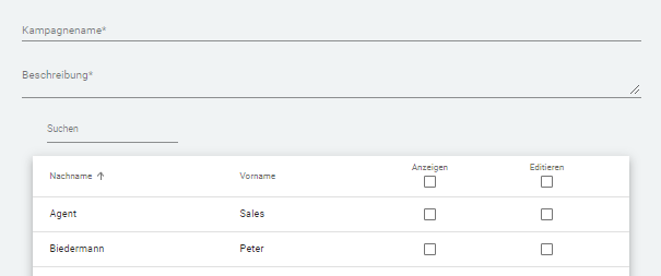 Eine neue Kampagne benötigt einen Namen und eine Beschreibung. Darunter können Sie Rechte für NutzerInnen vergeben. Dazu mehr unter Punkt 3.6.