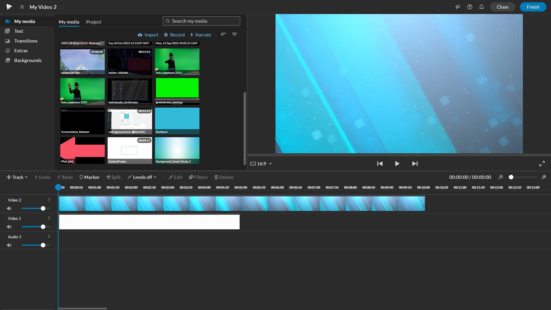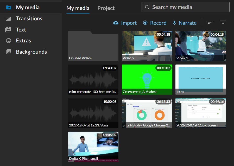 Sobald ein neues Video-Projekt ausgewählt worden ist, gelangen Sie in die Bearbeitungsansicht.