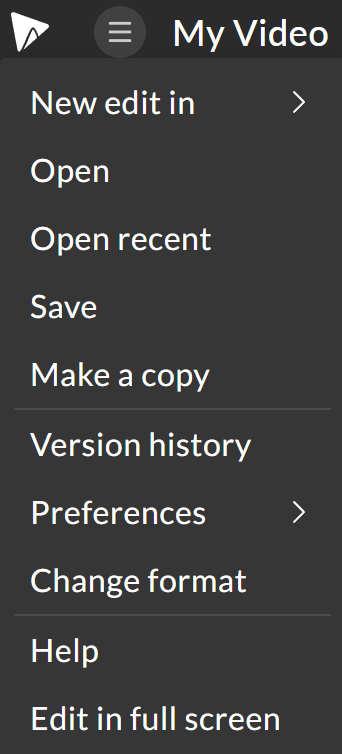 In der oberen Leiste finden Sie links neben dem Video-Edit-Titel das Hauptmenü.
