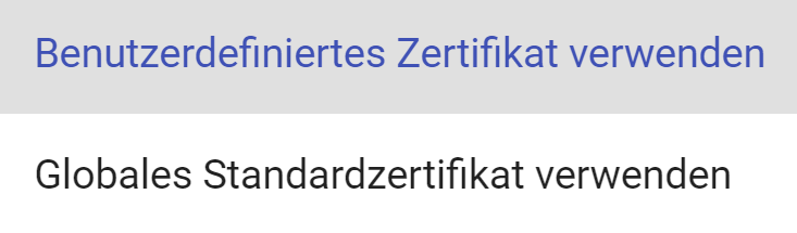 Sie können entweder das globale Standardzertifikat verwenden oder ein benutzerdefiniertes Zertifikat erstellen.