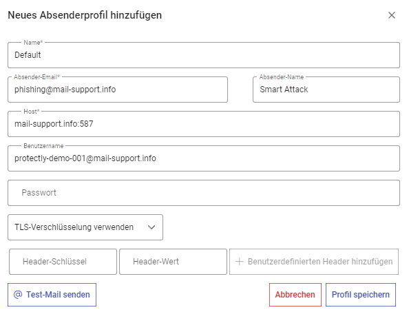 Unten sehen Sie ein Beispiel, wie ein neues, kopiertes Absender-Profil aussehen könnte: