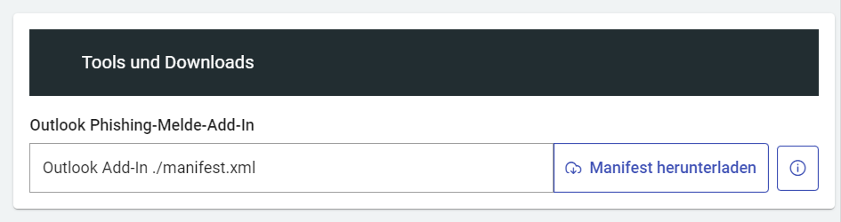Wenn Sie auf den Informations-Button „i" klicken, kommt man zu einer ausführlichen Erklärung der Installation des Meldebuttons in Outlook.