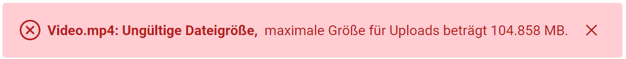 Hinweis: Die maximale Dateigröße beträgt 100mb. Möchten Sie eine Datei hochladen die größer ist erscheint eine Warnung.
