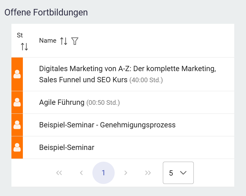 In dem Bereich Offene Fortbildungen werden alle für Sie anstehenden Fortbildungen gelistet.