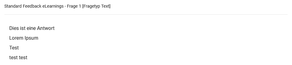 Bei Textfragen werden alle eingegeben Textantworten aufgeführt.