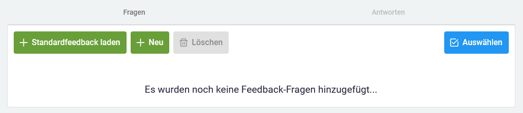 Sollten Sie bisher keine Fragen erstellt haben, erscheinen die Standardfragen in Ihrem Feedback.