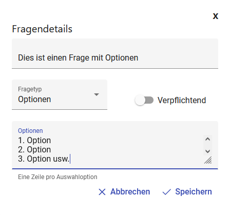 Unter Optionen können Sie Teilnehmende zwischen den von Ihnen hinterlegten Optionen auswählen lassen.