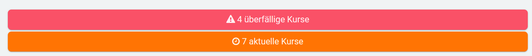 Durch zwei prominent platzierte Hinweisbalken im oberen Bereich werden Sie darüber informiert, wie viele aktuelle und überfällige Fortbildungen sich in diesem Bereich befinden.