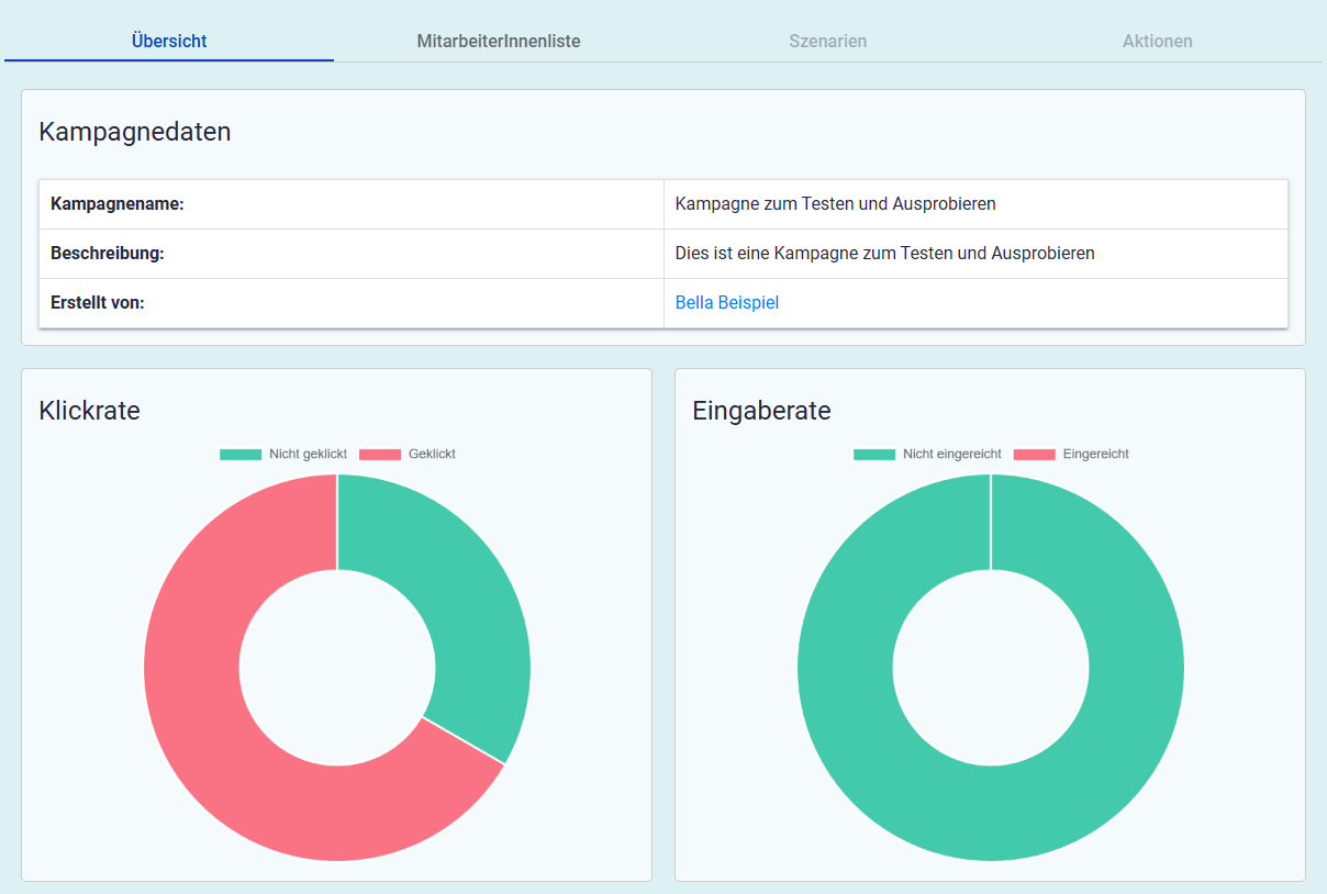 Im Reiter Übersicht sehen Sie die Daten der Kampagne: Kampagnenname, Beschreibung und ErstellerIn.