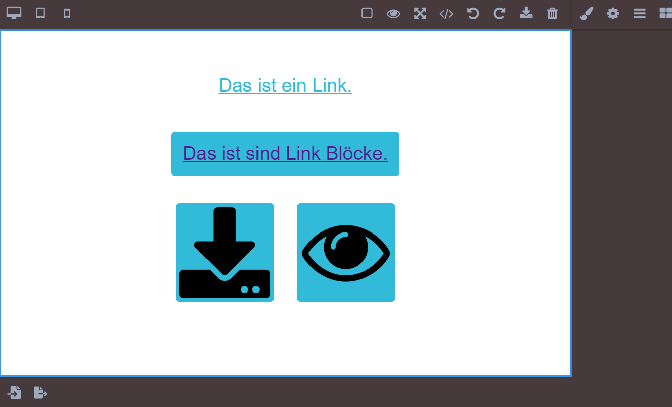 Im Unterschied dazu sind ‘Link Blöcke’ leere Felder, die mit anderen Blöcken wie Text und Bildern befüllt werden können. So kann man zum Beispiel einen Button erstellen. Klickt man auf den Block, wird der Link geöffnet.