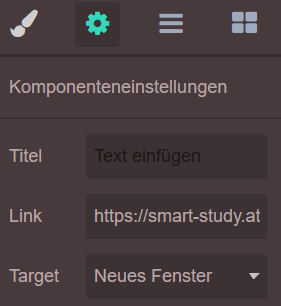 Um einen Link zu hinterlegen, muss man in den Komponenteneinstellungen die URL in das entsprechende Feld eingeben.