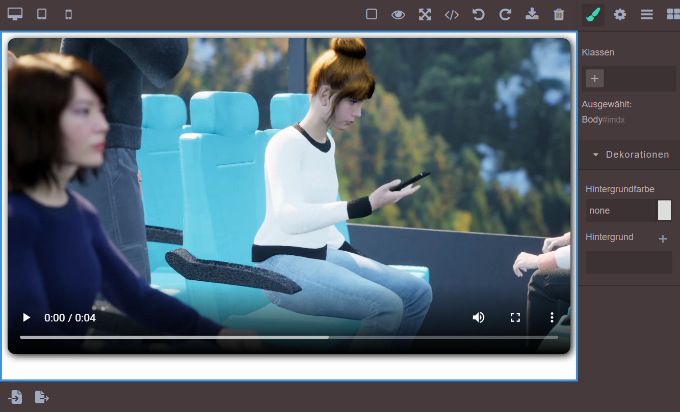 Im Editor gibt es einzelne Komponenten auf dem Canvas (der Leinwand), das können Textblöcke, Bilder oder Knöpfe sein. Über Komponente anzeigen können Sie einzelne Komponenten ein- und ausblenden. Zu Beginn gibt es immer eine Body-Komponente.