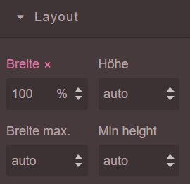 Im Stilmanager ist unter ‘Layout’ die Breite auf 100% eingestellt. Das bedeutet, dass das Video immer die volle Breite der Fläche einnimmt, egal wie groß ein Fenster eingestellt ist.