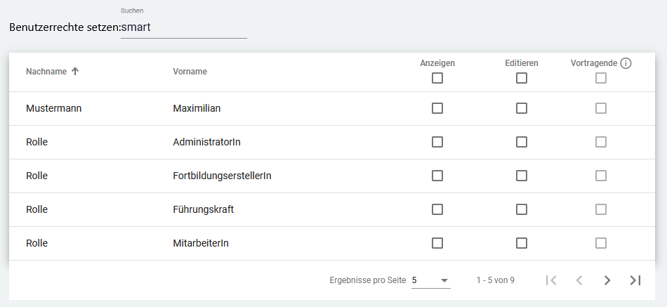 Zusätzlich zu den Benutzerrechten können Sie auch Vortragende auswählen. Diese werden in den Fortbildungsinformationen angezeigt.