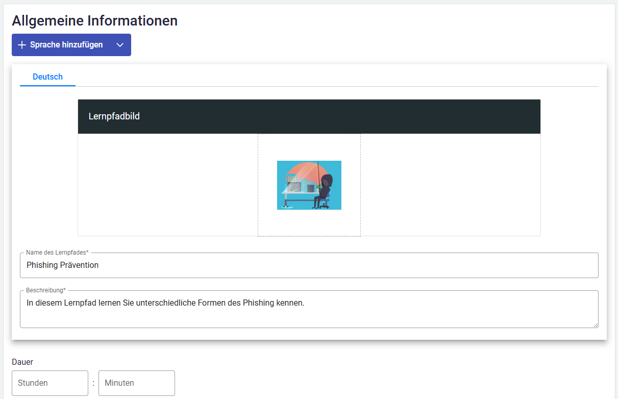 Ein Bild laden Sie entweder über Ihren Rechner oder den systemeigenen Datei-Manager hoch. Auch die Dauer des Lernpfades können Sie hier eintragen.