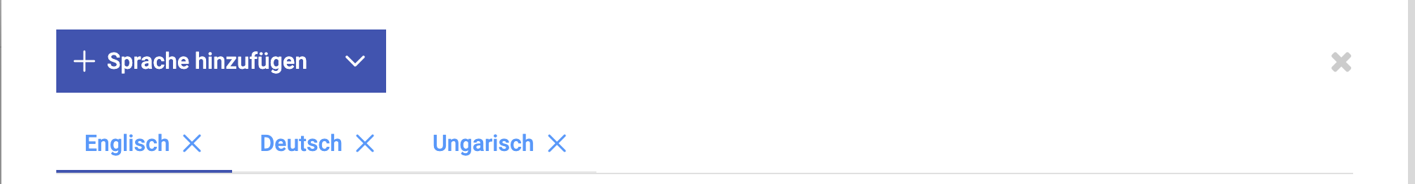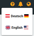 Wenn mehr als eine Sprache ausgewählt ist, erscheint im System (oben rechts) für alle Rollen ersichtlich ein „Weltkugel"-Symbol über das die Sprache umgestellt werden kann.