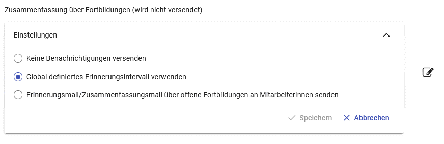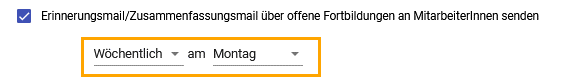 Wenn Sie den Haken hier setzen können Sie auswählen, in welchen Abständen die Erinnerungsmails verschickt werden. Organisationseinheiten können dazu eigene Einstellungen treffen.