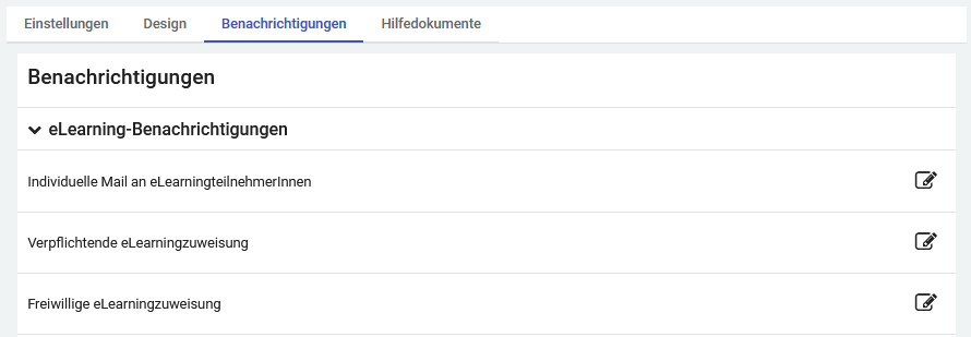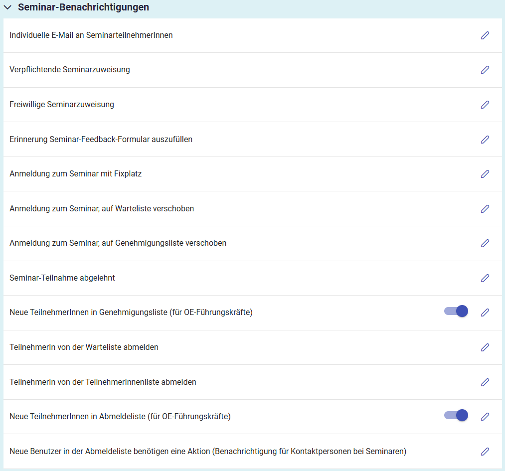 Hier können Sie Benachrichtigungen einstellen, die den Mitarbeitenden bei Seminaren zugeschickt werden.