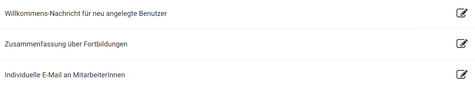 | {{assignmentList}} | Liste aller zugewiesenen Fortbildungen der E-Mail-Empfangenden |