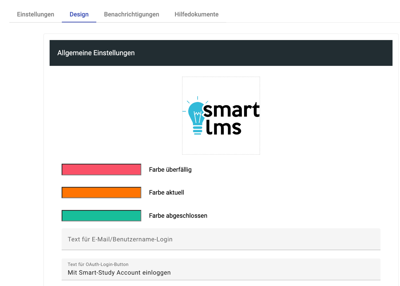 Bei den Designeinstellungen ist stets auf ausreichenden Kontrast zu achten, insbesondere zur Sicherstellung der Barrierefreiheit. Ebenfalls können Einstellungen zum Design spezifisch für eine Organisationseinheit getätigt werden. Mehr dazu finden Sie unter Organisationseinheit-hinzufügen.