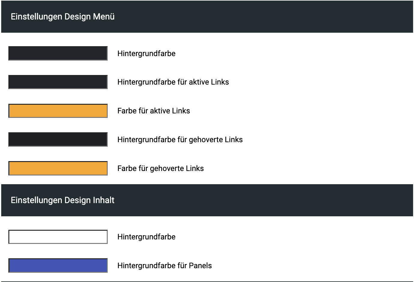 In den Einstellungen Design für Menü und Inhalt kann das Farbdesgin im System nach Belieben angepasst werden.