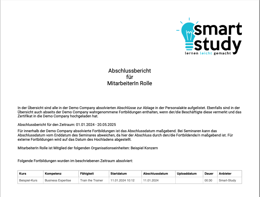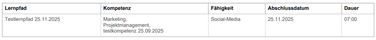 #NEU Es werden auch die abgeschlossenen Lernpfade von Mitarbeitenden in der exportierten Zusammenfassung in einer eigenen Tabelle aufgelistet.