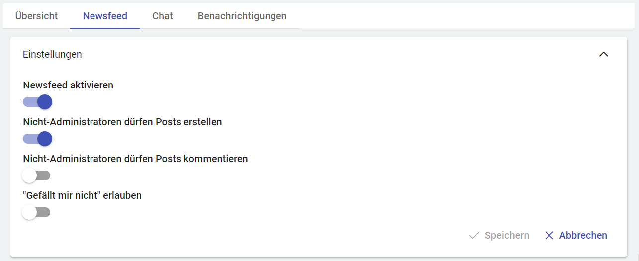 Unter dem Menüpunkt Newsfeed können Einstellungen für den Newsfeed getroffen werden.