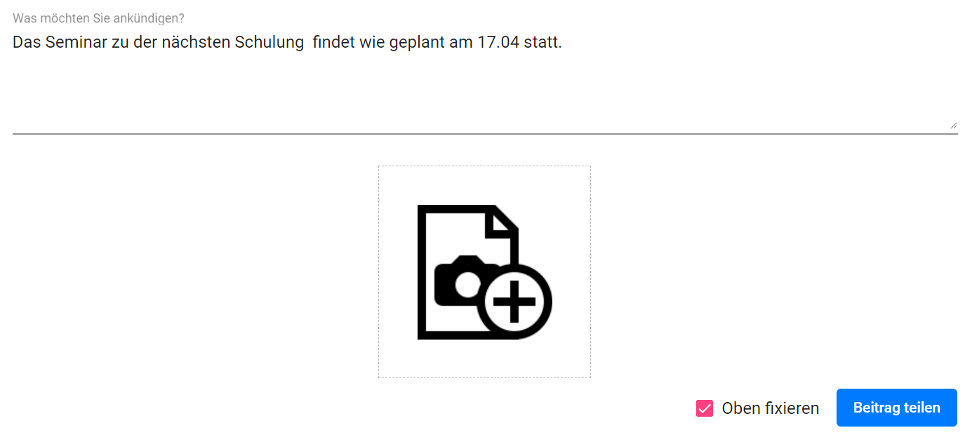 Nach dem Speichern können Sie sofort Beiträge verfassen.