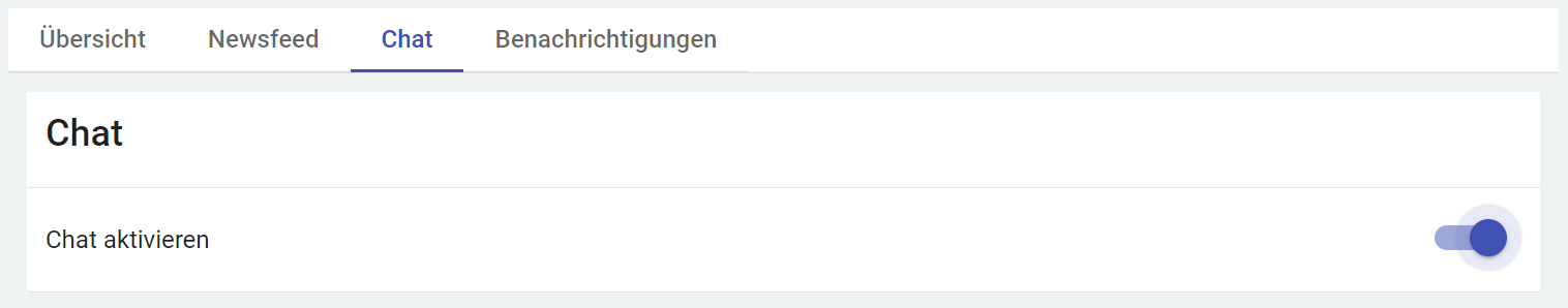 Hier können Sie einen Chat für Ihre MitarbeiterInnengruppe aktivieren. Hier können, im Gegensatz zum Newsfeed, Mitglieder dieser MitarbeiterInnengruppe Beiträge verfassen und miteinander kommunizieren.