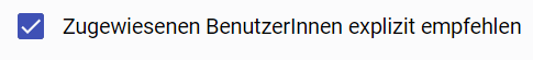 Um ein Seminar zu empfehlen, müssen Sie bei der Seminarzuweisung die Checkbox ‘Zugewiesenen BenutzerInnen explizit empfehlen’ aktivieren. Bei der Auswahl wird das zugewiesene Seminar mit einem Stern gekennzeichnet und an erster Stelle vorgereiht.