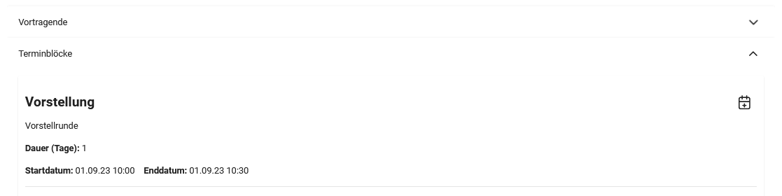 Unter dem Reiter Seminarinformationen können Sie die Terminblöcke ausklappen.