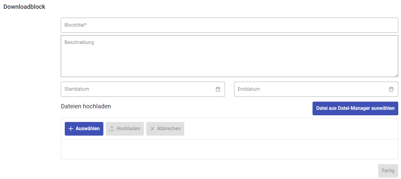 Mit einem Klick auf ‘Fertig’ können Sie Ihren Download-Block speichern.