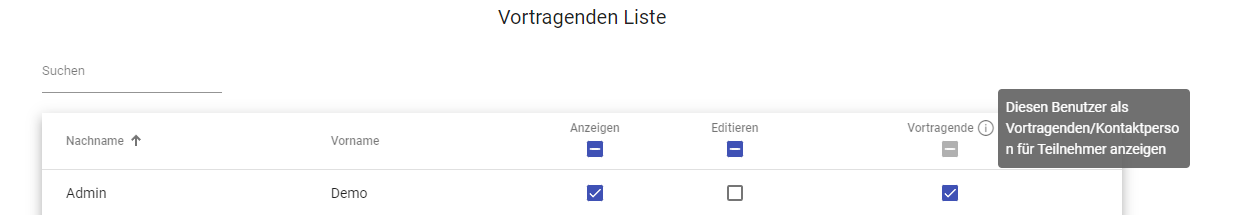 Darunter können Sie noch eine vortragende und eine gastgebende Person festlegen. Diese Person wird den TeilnehmerInnen dann als Kontaktperson angegeben. Auch die Benutzerrechte können hier gesetzt werden.