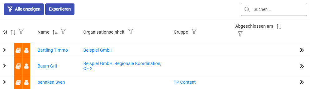 Klicken Sie rechts neben dem Namen auf den Pfeil. Sie können eine Beschreibung ausfüllen oder die Umfrage direkt abschließen.